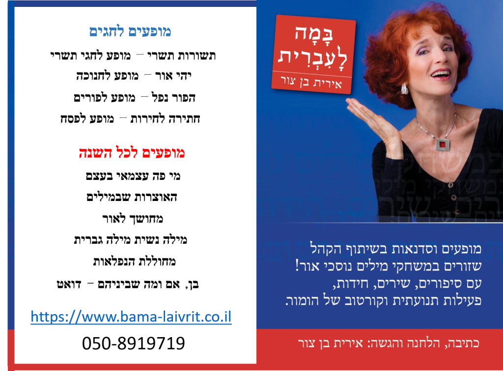 'חוויות מארץ הניקוד': מחזמר מקוון - שעת סיפור - סדנה המשכית.